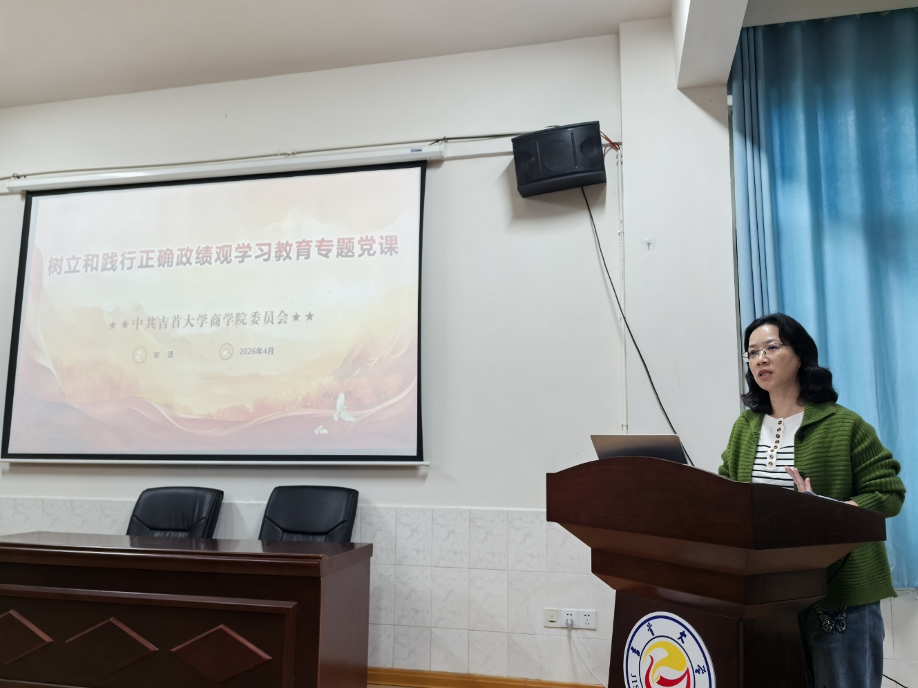 树立和践行正确政绩观学习教育系列活动:学院党委书记宋洁为学院全院教职工上党课