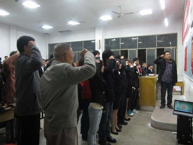 11月20日、21日晚,我院在第三教学楼3002教室举行老龄党员给年青党员赠书暨中共吉首大学商学院总支委员会新党员入党宣誓仪式。原经管系系主任、现学院关工委副主任李泽南、院党总支书记张生强、院党总支副书记钟高峥出席仪式。仪式由院学工办主任胡锦湘主持。