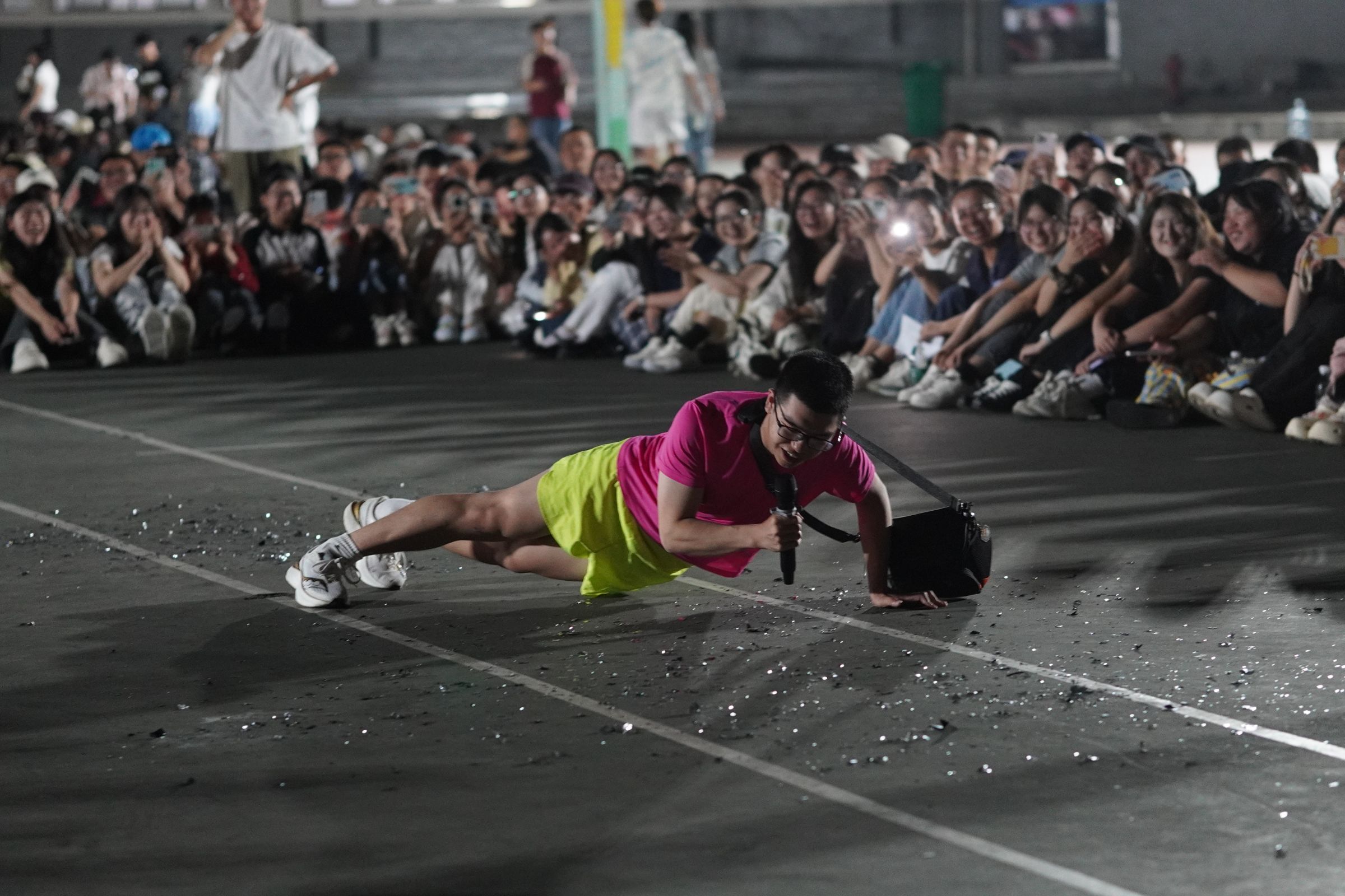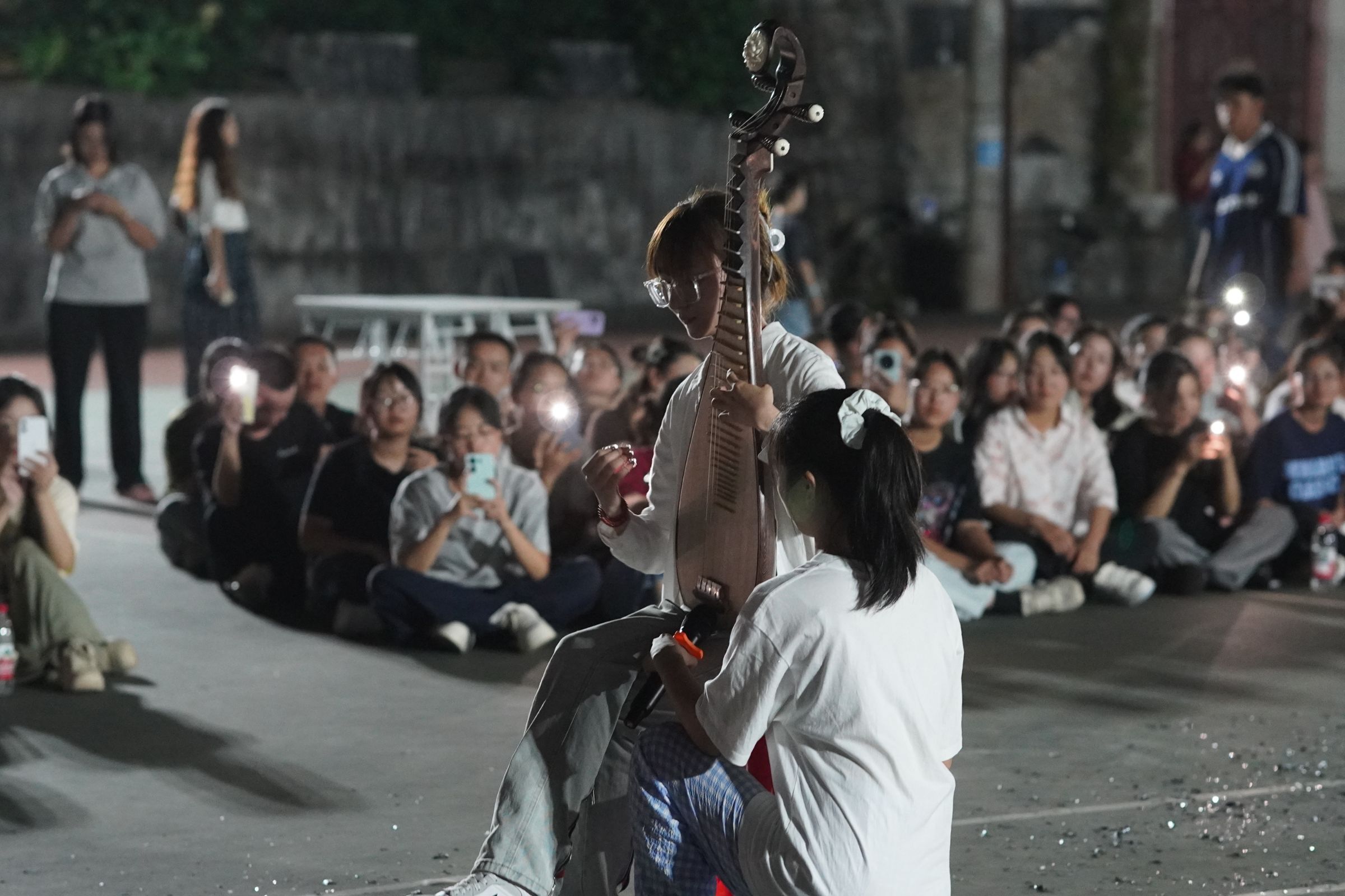 除节目展演外,晚会还设置了温馨环节:在这个与国同辉的中秋夜,师生共同为几位恰逢国庆中秋双节期间过生日的2025级新生庆祝生日,齐唱生日祝福歌,让新生在异乡校园感受到家的温暖。