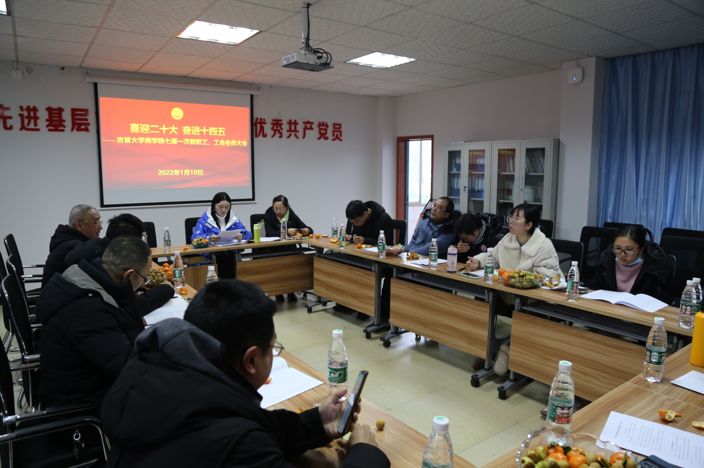 1月10日下午,学院七届一次教职工、工会会员大会在院会议室召开,全院教职工参加了会议,会议由院党委副书记、院工会主席胡锦湘主持。